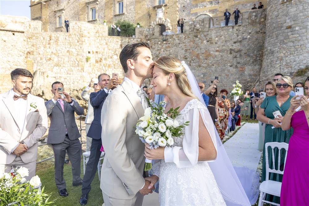 Oltre ai momenti salienti, ciò che più amiamo della cerimonia è lo scatto delle panoramiche: attraverso foto più larghe e ambientate, riusciamo a raccontare ed ambientare il vostro matrimonio nella sua totalità, proprio come fanno i registi nei film. Nella nostra galleria potrete infatti vedere fotografie del Castello di Trabia, del duomo di Monreale e della Torre di Scopello, tutto in provincia di Palermo. I nostri fotografi cattureranno le espressioni, le emozioni, gli stati d'animo ed i colori di quel momento per rivivere nel tempo il loro magico giorno. _______________________________________________________________________________________________________________________________________________________________________ One of the most important moments of the day. The pictures of the exchange of rings and of the most important moments of the wedding will make you live the emotions of that day again. Our team of photographers in Palermo, professionals specialized on wedding photography, uses the best equipment in the market, caring about every detail with care and attention and catching all the important moments of the ceremony and valuing the splendid colors and architectures of our Sicily, like the Cappella Palatina in Palermo, with its arabic-norman-byzantine style, the church Santa Maria dell’Ammiraglio in Palermo, better known as Martorana, that has a mix of culture, architectures and art, or the romantic Parrocchia San Francesco di Paola in Palermo, with its baroque frescoes- What we also love of the ceremony is shooting the panoramic pictures: using larger pictures, we manage to tell and set your wedding, giving it an identity and localizing it in a specific place, like the directors do in their movies.